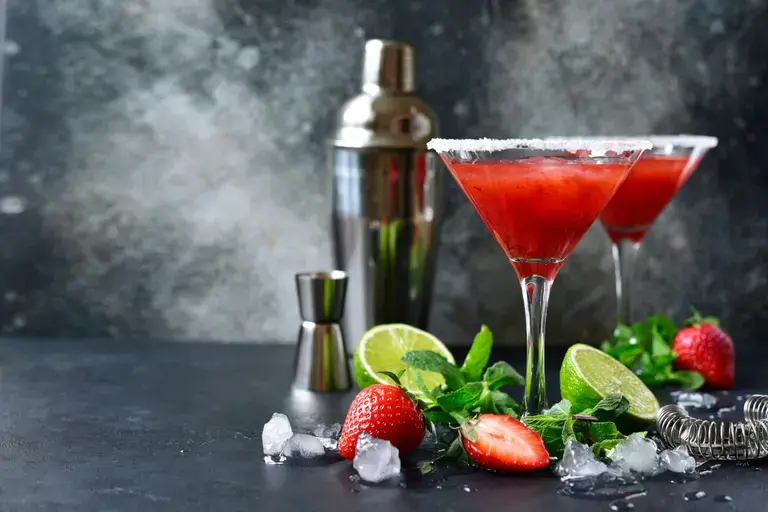 Si bien el origen preciso del cóctel margarita es incierto, la mayoría de las historias coinciden en que nació en algún lugar entre México y Estados Unidos, y que no tardó en popularizarse. Preparado a base de tequila, cointreau y zumo de limón, es otro de los cócteles que se suma a los favoritos veraniegos por su sabor refrescante. En esta versión de fresa, se agrega el dulzor de la fruta, una textura diferente y un color muy atractivo. Para preparar un margarita de fresa, es preciso mezclar fresas (aproximadamente 10), tequila añejo (60 ml), cointreau u otro licor de naranja (30 ml), azúcar de caña, hielo y zumo de limón. Licuar todos los ingredientes y servir en una copa escarchada con sal. Para una textura tipo frapé, recomendamos congelar las fresas aproximadamente una hora antes de la preparación, para que al licuarlas y mezclar con los demás ingredientes, el resultado sea perfecto.