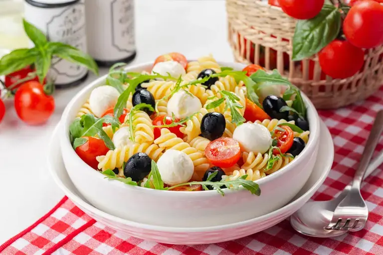 Las ensaladas son otro de los comodines frescos de cualquier picnic. Para esta ensalada de pasta, puedes elegir la pasta que más te guste (con farfalle queda muy bien). Cocina la pasta en agua hirviendo, pásala por agua fría para enfriar y luego saltéala con un poco de ajo y aceite. Mezcla la pasta con mozzarella fresca y tomates cherry en cortados cubos, queso parmesano rallado, unas hojas de albahaca y condimentos al gusto.