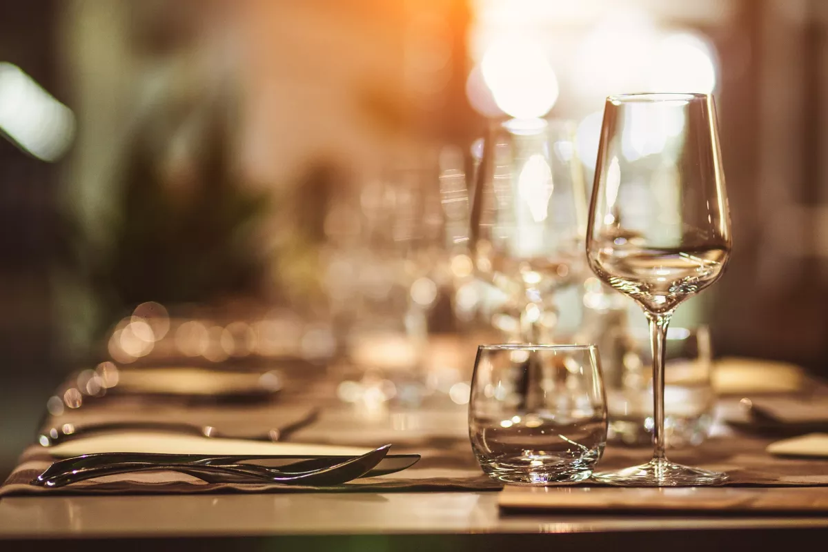 • A la derecha del vaso de agua y unos 2 centímetros más abajo se coloca la copa de vino blanco. La copa de vino tinto va a la derecha y ligeramente por encima de la copa de vino blanco.