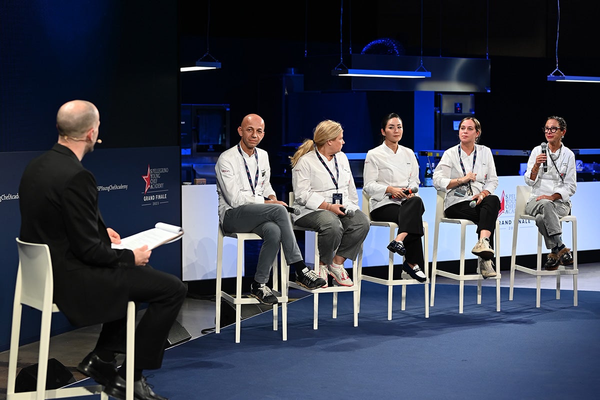 A continuación, les preguntaron a los miembros del jurado qué les había aportado la experiencia del Spyca y qué les había inspirado. "Sin duda fue una fuente de inspiración. Cuando empecé no había mentores, mientras que los jóvenes chefs de hoy tienen la oportunidad de conocer a cocineros de todo el mundo e inspirarse, es una gran energía", dijo Silverton. "La nueva generación está muy concienciada con la sostenibilidad. Los jóvenes están muy conectados con el mundo, realmente tienen una historia real que contar", respondió Darroze. "Hoy, en comparación con mi generación, los jóvenes tienen la oportunidad de escuchar a los chefs hablar, somos más responsables sobre su futuro", añadió Camanini.