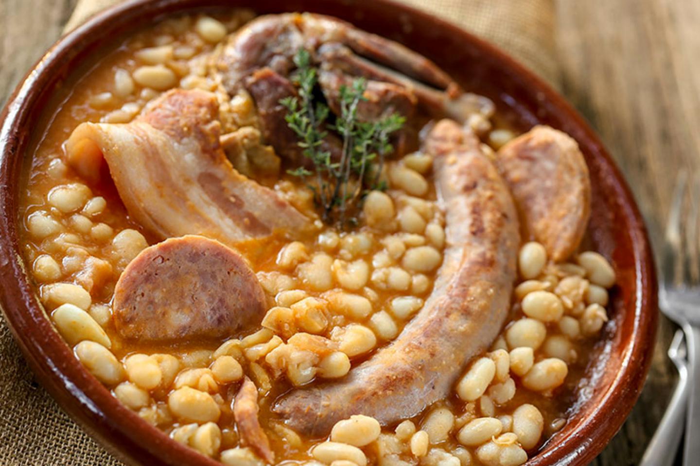 La capital mundial del cassoulet de cocción lenta es la región del Languedoc, en el suroeste de Francia. Más precisamente, es la ciudad de Castelnaudary la que reclama la paternidad de este plato mundial. Recuerdo claramente unas vacaciones con mis padres explorando la ciudad de Carcassonne y luego, por supuesto, parando a cenar: fue mi primer encuentro con el cassoulet. No tenía ni idea de qué pedir, porque quería probar todo lo que había en el menú, a pesar de ser muy joven. Inmediatamente me llamaron la atención el confit de pato, las salchichas, las judías de manteca, esas maravillosas judías blancas cremosas. Me pareció que la única solución plausible era pedirlo todo, pero en un solo plato. Todas estas bondades se pueden tener en un único gran plato, el cassoulet.
