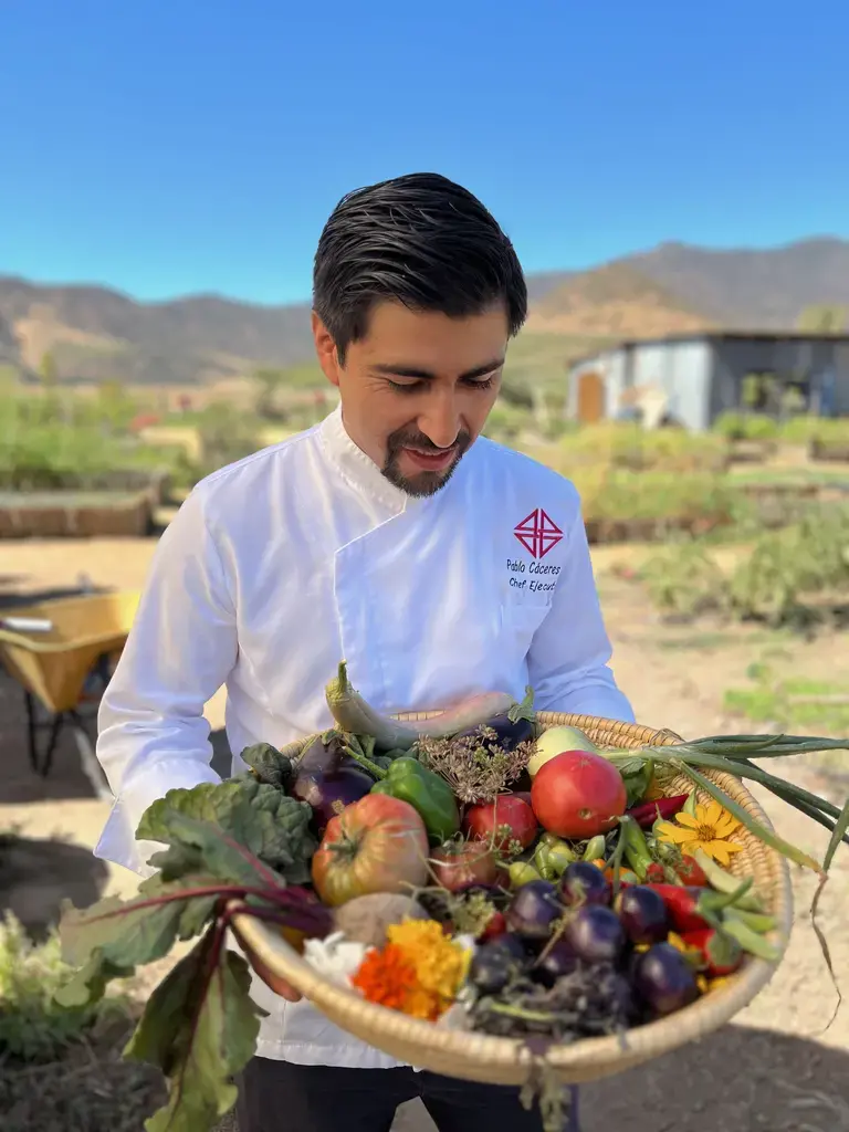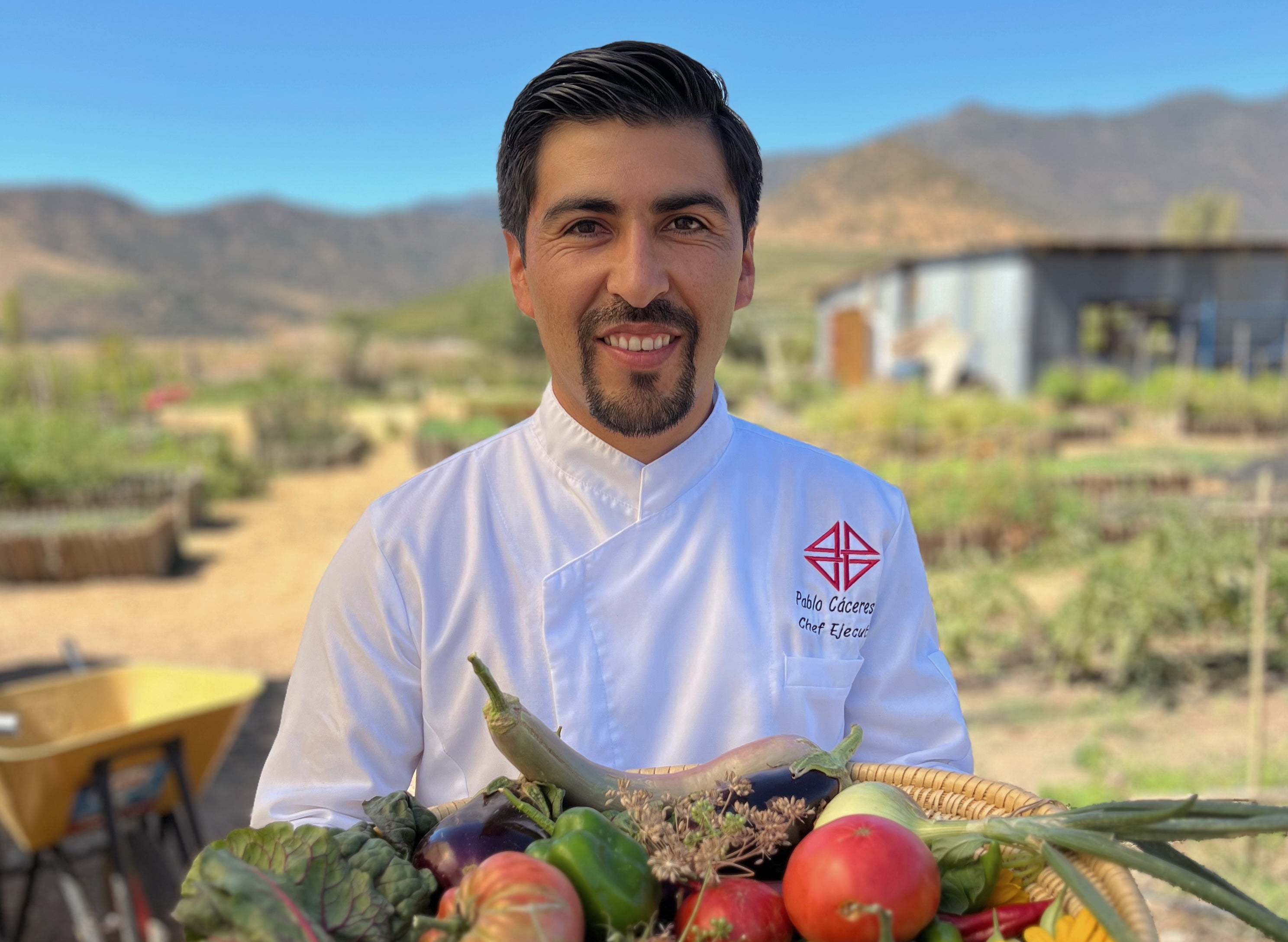 Para Pablo Cáceres, la conexión con la tierra no es un concepto nuevo. Criado en una familia ligada a la agricultura sustentable en el sur de Chile, su infancia estuvo marcada por el contacto directo con los productos del mar y del campo. Egresado de la escuela Santo Tomás en Concepción, inició su carrera en cocinas de alto nivel como The Ritz-Carlton Santiago, donde trabajó junto a Sergi Arola, y más tarde en The White Rabbit, en el barrio Bellavista. Su formación se consolidó en Europa con experiencias en el restaurante Aponiente, de Ángel León (tres estrellas Michelin), en Mirazur, con Mauro Colagrecco, y en el restaurante Yapa, en Milán.