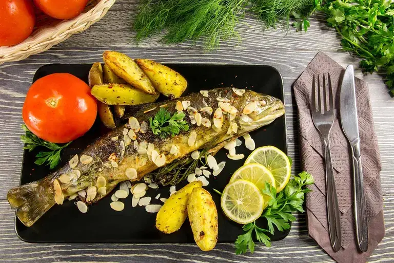 La trucha es un pescado que combina maravillosamente con frutos secos. Para esta receta, precalienta el horno a 200 °C. Coloca 4 filetes de trucha en una bandeja, salpimienta y cubre cada uno con almendras laminadas. Sobre las almendras, añade pequeñas porciones de mantequilla para que se doren de manera uniforme y, luego, hornea durante 15 minutos. Como toque final, espolvorea con un poco de ralladura de limón al momento de servir para aportar frescura y realzar el sabor. Para darle un giro innovador, puedes incorporar una cucharadita de miel sobre las almendras antes de hornear, lo que creará un contraste dulce particular.