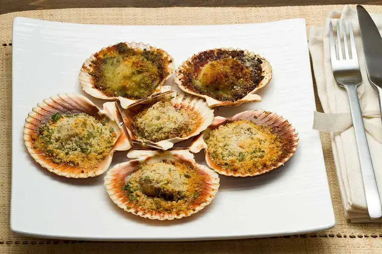 Las vieiras gratinadas son un clásico irresistible, que funciona muy bien como entrante. Mezcla pan rallado con ajo y perejil fresco picados, añadiendo un chorrito de aceite de oliva para obtener una textura húmeda. Coloca las vieiras limpias en sus conchas, cúbrelas con la mezcla de pan rallado y añade un poco de vino blanco. Hornea a 180 °C durante 10 minutos y gratina los últimos dos minutos para un acabado dorado y crujiente. El truco para un resultado perfecto está en no excederse en el tiempo de cocción, ya que las vieiras pueden volverse gomosas si se cocinan demasiado. Como acompañamiento, una ensalada tibia de espinacas con frutos secos complementará a la perfección este plato delicado.