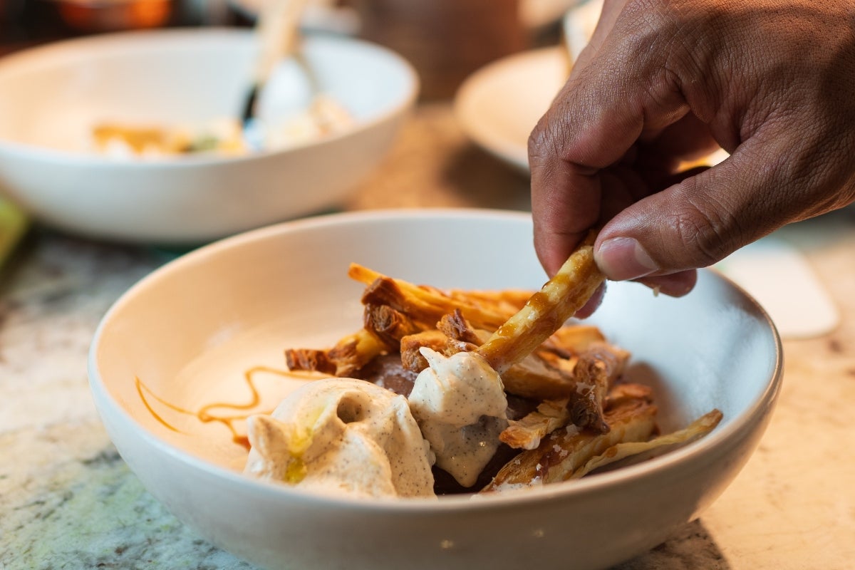 El nombre de Selma sale de un cuento que le gustaba mucho a mi hija sobre una abeja que todos los días tiene una rutina. Se gana la lotería y decide seguir haciendo lo mismo después de ganarla porque ama mucho su estilo de vida. Selma es un poco eso. Es volver un poquito a lo que yo hacía en Francia cuando trabajé en Joel Robouchon y Bristol y volver a las raíces, una especie de bistró con un producto muy local que combina parrilla y vegetal. Ya veníamos con la idea de buscar un local al lado del restaurante El Chato para poder digamos operar de una manera mucho más fácil y yo poder estar un poco pendiente de las dos operaciones.