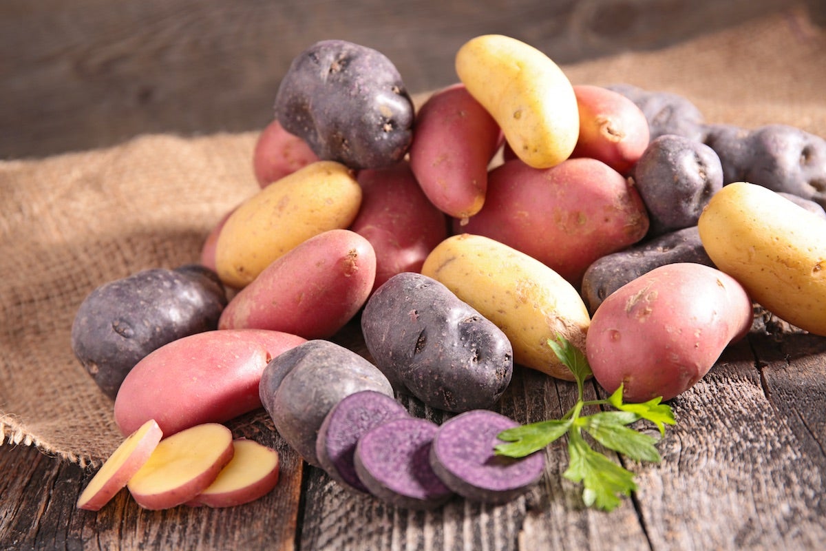 Y ya llegando al final de nuestra selección, nos encontramos con la patata Vitelotte, conocida por el color morado intenso de su piel y también de su pulpa, otorgado por las antocianinas que posee, sustancia que también está presente en la cebolla morada o en las lombardas. Esta particularidad convierte a esta variedad de patata en una opción gourmet, y hasta muchas veces también considerada como exótica.