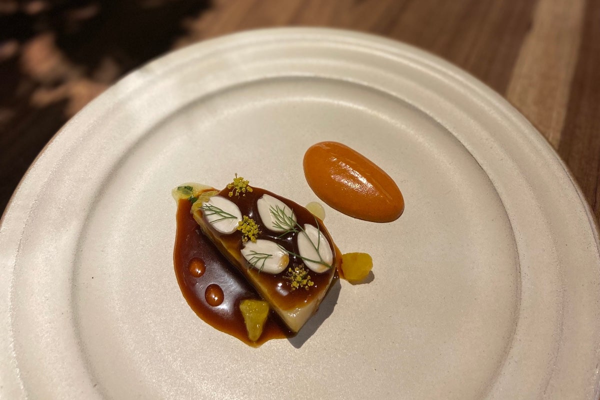 Hinojo a las brasas, Nduja, Gastrique de Vermouth blanco y almendras
