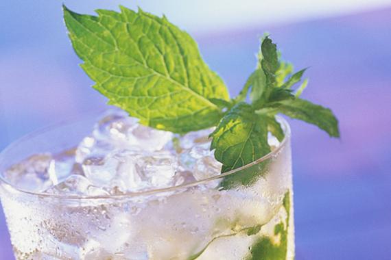 Añade la hierbabuena y vierte 4 dedos de agua con gas.