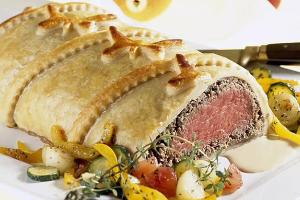 Una receta fácil y sabrosa de solomillo Wellington con verduras, en la que destaca una dorada y crujiente masa sin gluten.