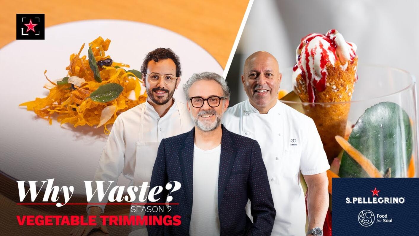 En la segunda serie de vídeos de Why Waste? en Fine Dining Lovers, Massimo Bottura desafía a algunos de los mejores chefs del mundo, como Domique Crenn, César Troisgros y Sat Bains, a reducir el desperdicio de alimentos en casa convirtiendo los restos y sobras de verduras en deliciosos platos.